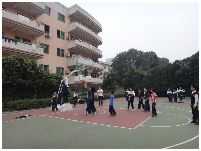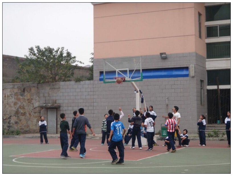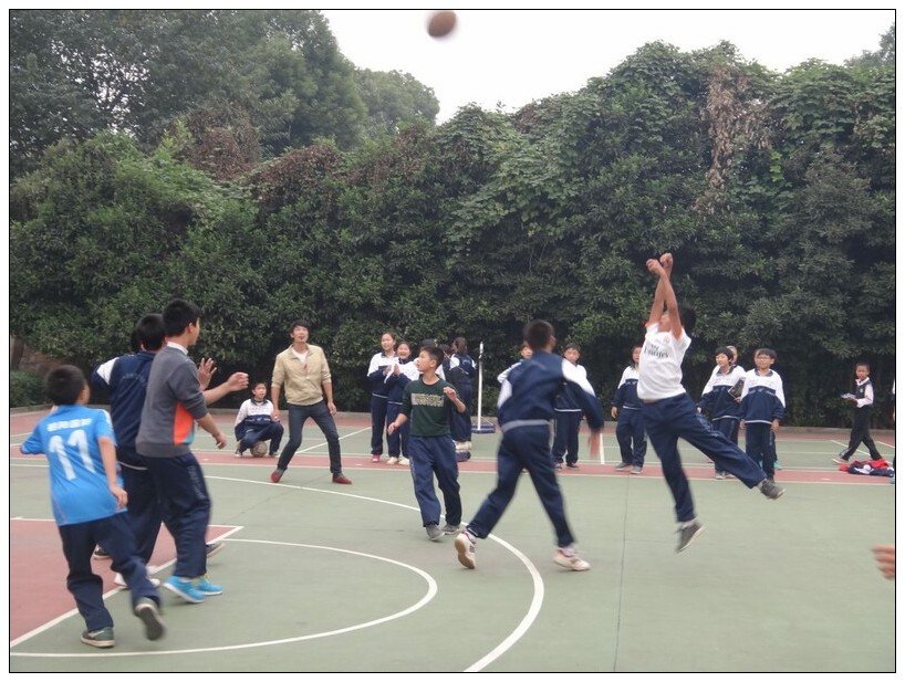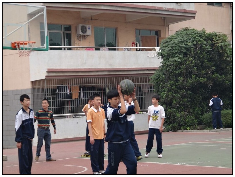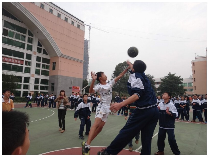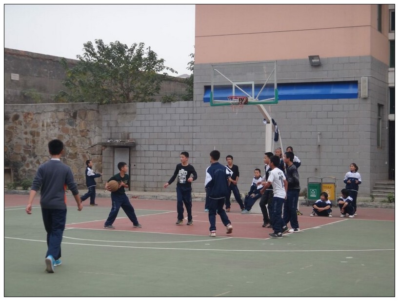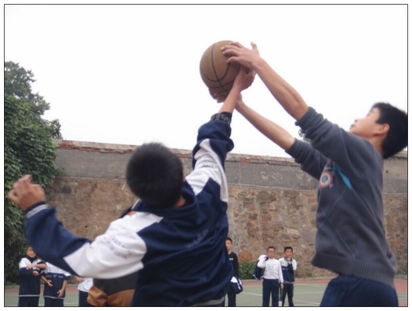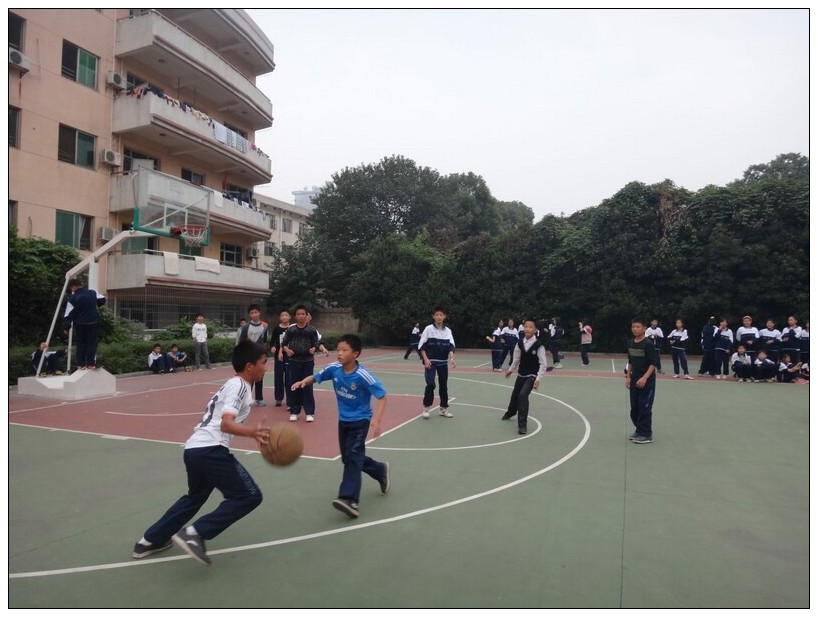 第八节课,学校初中部各班篮球运动员在班主任的组织下,摩拳擦掌,准备为班集体荣誉而战;四个班的同学分列篮球场各边围观助阵,气氛热烈;裁判为城院的两位实习老师,目光锐利,机敏公正,篮球赛在学校篮球场热血启动。