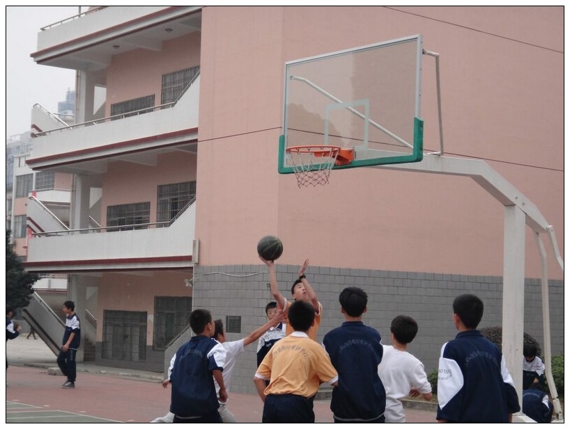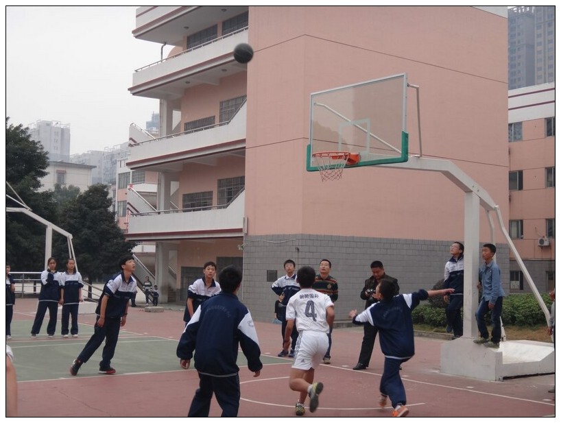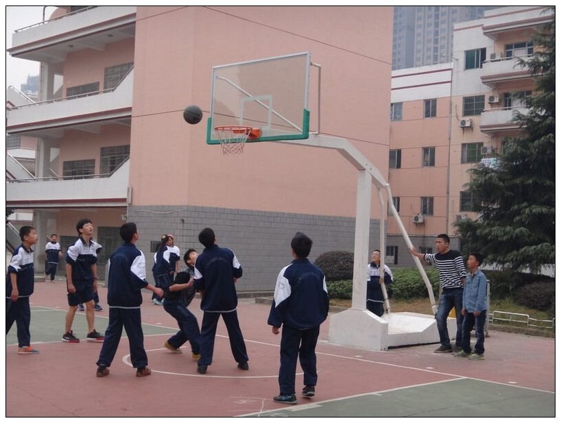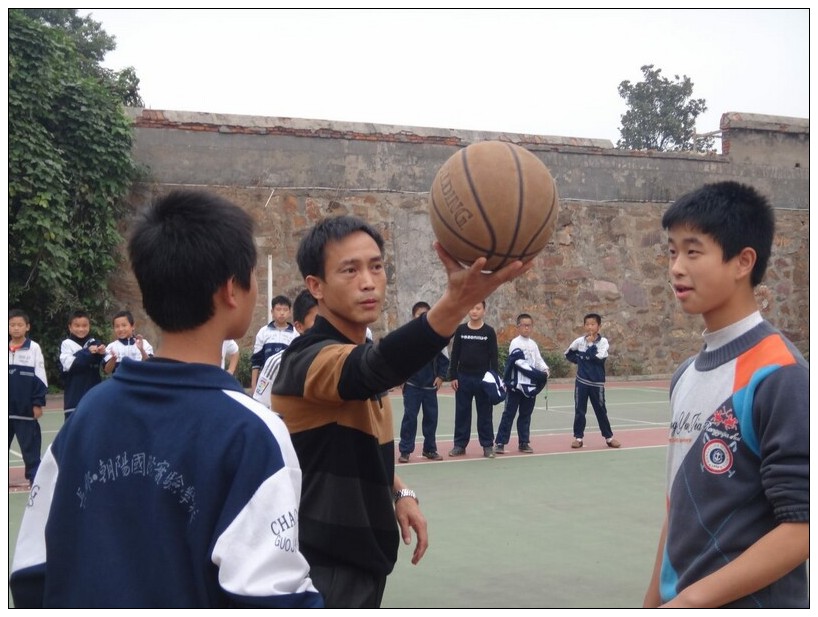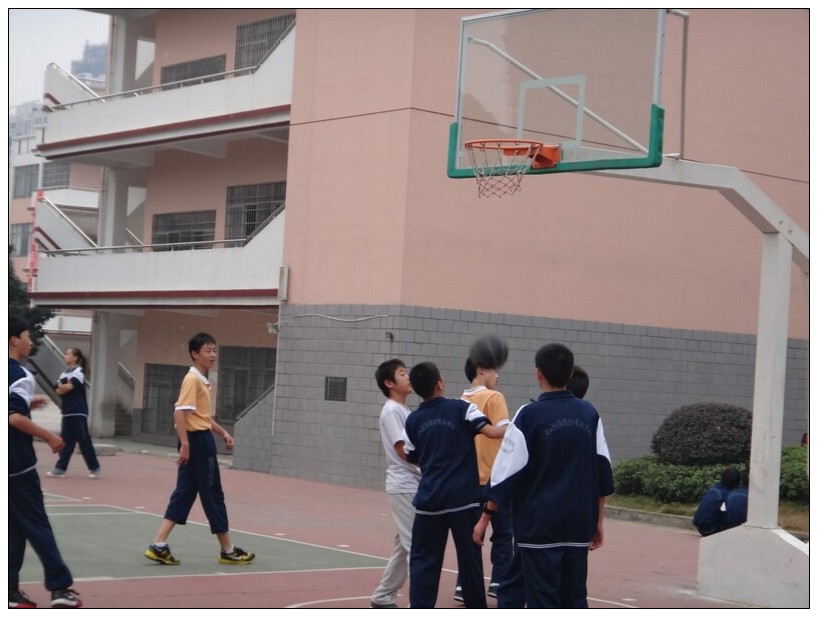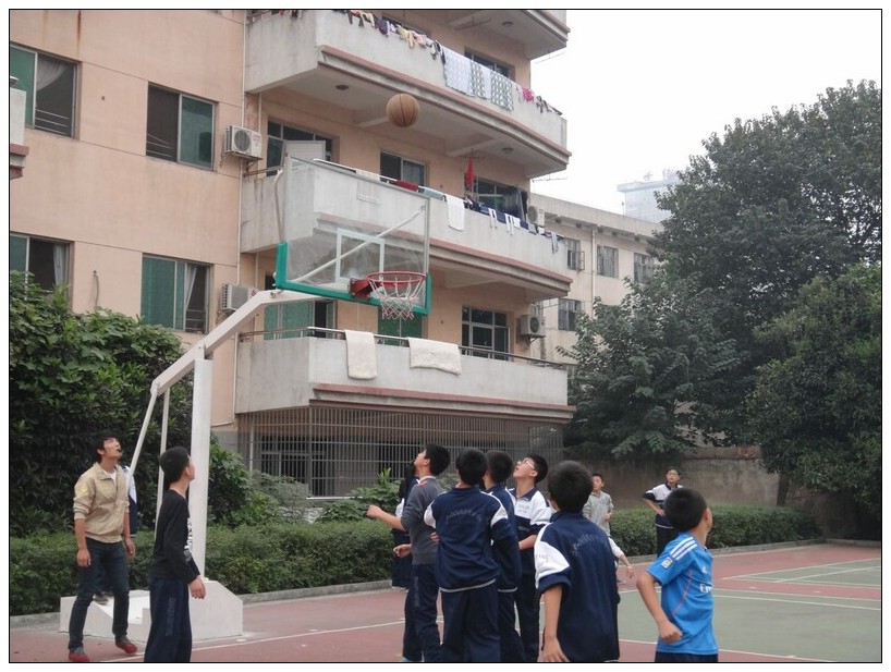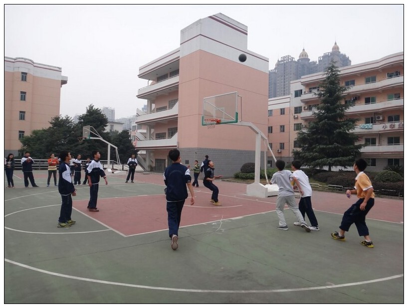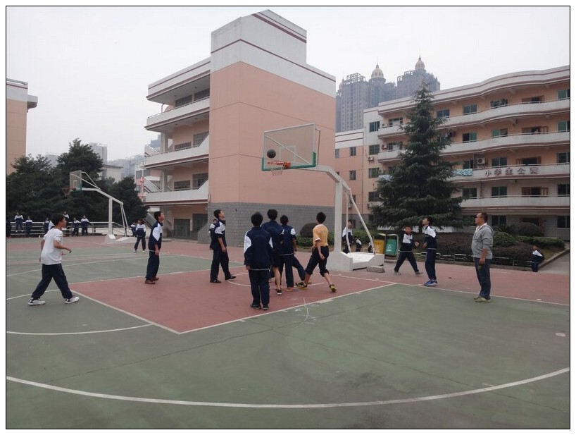 第八节课,学校初中部各班篮球运动员在班主任的组织下,摩拳擦掌,准备为班集体荣誉而战;四个班的同学分列篮球场各边围观助阵,气氛热烈;裁判为城院的两位实习老师,目光锐利,机敏公正,篮球赛在学校篮球场热血启动。