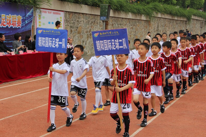怎么办?为全面激活孩子们的踢球热情,彭璇想出来一个法子----以班级为单位,举行校园足球比赛。学校全力支持,积极协调,朝阳国际第一届“阳光杯班级足球联赛”开赛了,四至六年级共17个班组队比赛,400多名学生参与其中。