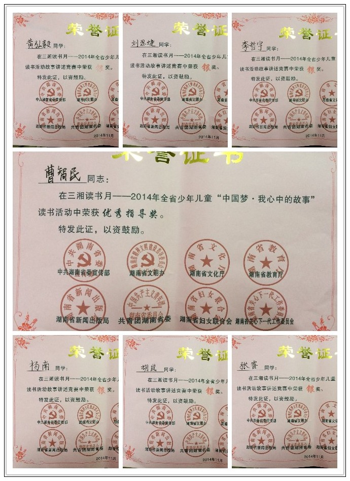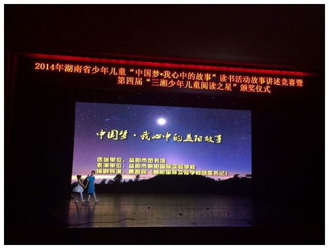 朝阳国际实验学校学生(四1班黄弘毅、五3班张睿、五8班杨南、六1班李哲宇、胡岚、六4班刘思婕)代表益阳市参赛的《中国梦-我心中的故事》为观众呈现了一个融思想性、艺术性、文学性于一体的故事讲述表演,并获得银奖,其节目中讲述的安化黑茶的故事与益阳弹词的介绍,在美丽的星城引起轰动,深受观众的一致好评!