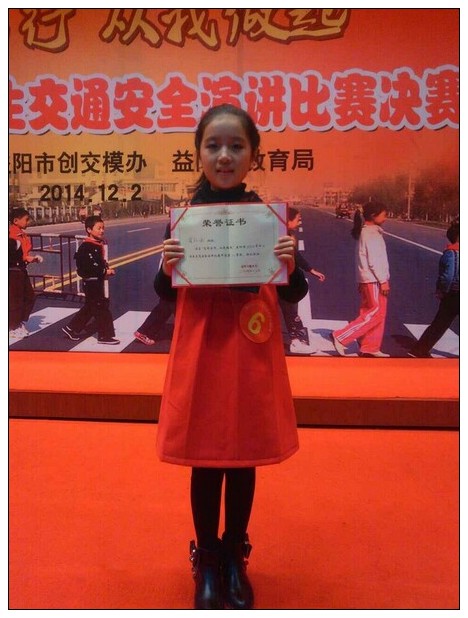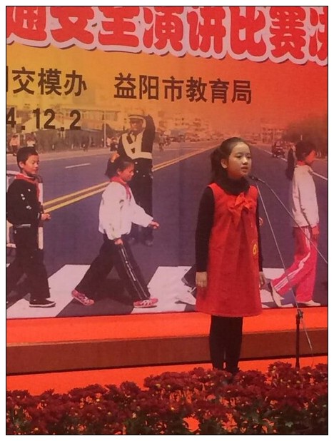 12月2日,是第三个全国交通安全日。为了强化学生的安全意识,普及交通安全知识,熟悉各种交通规则,培养安全出行意识,益阳市教育局组织开展了全市中小学演讲比赛,主题是“文明出行,从我做起”。 我校接到任务后,认真对待,先是各班派代表参加了各年段的初赛,在近五十人当中选出三个孩子进行了决赛,最后,五年级的蒋知涵同学以其标准的发音、充沛的感情、圆融的语感、超常的感染力胜出,由她代表朝阳国际参加了在益阳市大剧院举行的全市演讲比赛,并获得全市二等奖的好成绩。