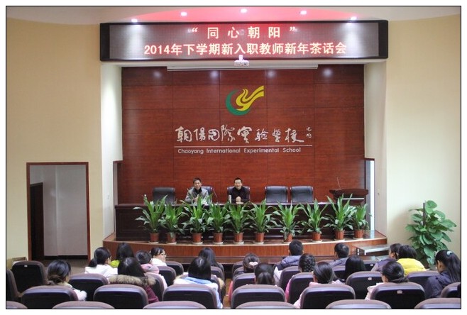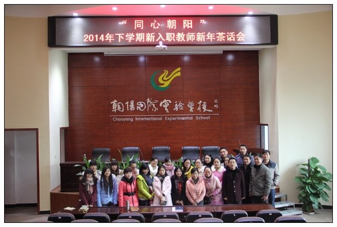 12月23日下午在学校主管教学副校长唐友田的指导下,由学校教科室组织2014年下学期新入职教师召开别开生面的迎新年茶话会。茶话会上,教科室充分肯定了新老师的在半个学期的成绩,鼓励新老师不断努力,赶超师傅。新老师人人发言,表达了自己在朝阳的感受和感谢师傅对自己的关心、培养之恩。本学期,每一位新老师上出了三堂汇报课和比武课,通过磨课让自己快速成长。在感到压力的同时,也增加了前行的动力。新老师发言将近2个小时。接着,颜校长鼓励大家稳步前进,摆正心态,快乐工作。唐校长向大家提出了5点希望,指出学校特色逐步形成,办学质量有口皆碑,与新老师快速融入朝阳大家庭有密切的关系。下午5:15时,从外地出差赶回来的蓝校长也在会上祝贺大家的快乐成长,代表学校对大家致以新年的祝福,期待大家在新的一年里不断努力、不断超越、不断传出佳绩。辞旧迎新时,欢歌笑语起,茶话点个赞,朝阳共辉煌。