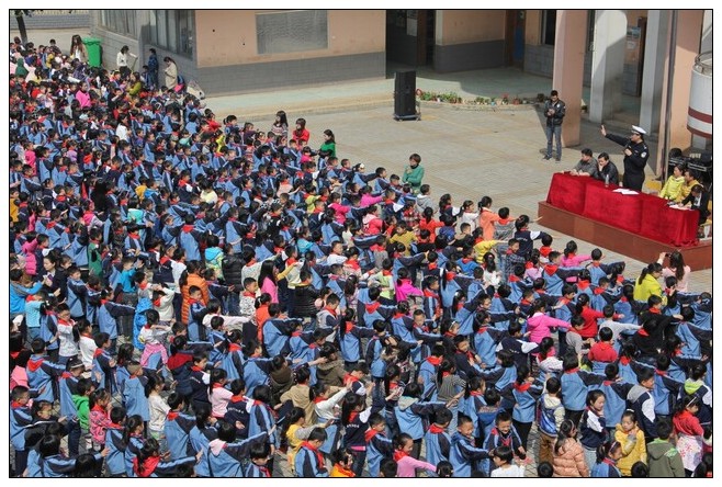 为了加强我校全体师生的交通安全意识,共同维护交通安全,建设平安校园,3月26日上午,阳光灿烂,春风和煦,在德育处的精心组织下,小学部全体师生在文化广场认真倾听了市交警一大队李队长的“牵手你我、共建平安校园”的交通安全知识讲座。李队长用生动的案例,例举了一个个触目惊心的道路交通安全事故数字,用通俗易懂的自创手势法教大家如何安全的过马路,还例举了我们身边的一宗宗交通事故,告诫大家,必须文明交通,文明出行。