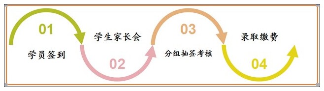 流程:学员签到→学生家长会→ 分组抽签考核 → 录取缴费