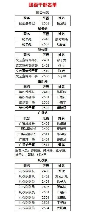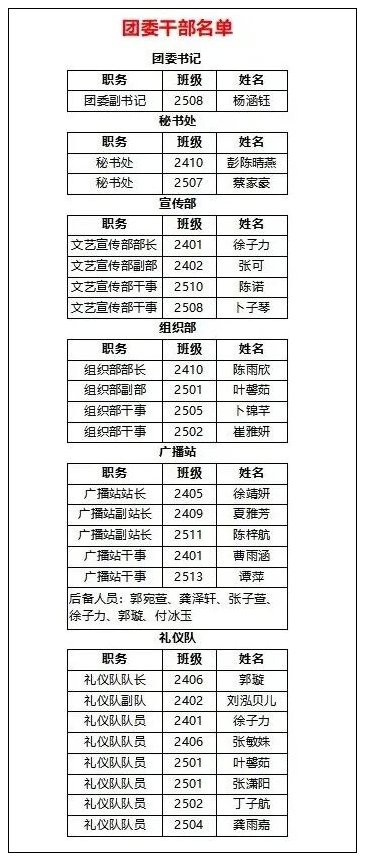 根据竞选方案,经各班民主推荐,公开竞选,拟任杨涵钰等六十多位同学为朝阳学校高中部2025年度团委、学生会干部,考察期为一个月,考察合格后,颁发团委学生会干部聘书,欢迎全体师生予以监督。
