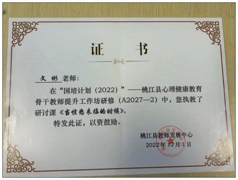 从湖南师范大学体育学院走出的文彬老师,自带体育人严谨务实的特质,而后续考取的多项专业资质,更让她的教育 “工具箱” 愈发丰富。国家二级田径裁判员的身份,让她深谙 “规则意识” 与 “拼搏精神” 的培养之道,常将体育竞技中的坚韧品格融入德育工作;国家二级心理咨询师、高级心理健康指导师的专业背景,让她能精准捕捉青少年心理波动,用科学方法化解成长烦恼;家庭教育指导师的资质,则让她搭建起 “学校 - 家庭”共育桥梁,为亲子沟通破局。多重身份并非简单叠加,而是在她手中形成了 “1+1>2”的教育合力,为后续深耕德育领域打下坚实基础。