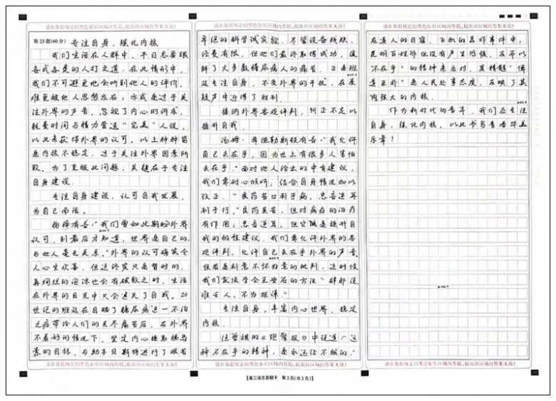 一等奖获得者小陈在谈及备考心得时分享:“每天坚持练字,不仅能平复学习时的浮躁心态,连解题思路都变得更顺畅了。” 翻阅她的答卷,数学试卷上复杂的函数题解法清晰明了,字迹娟秀工整;语文作文《英雄,我想对你说》更是全文无一处涂改,典故引用精准、行文流畅,堪称考场 “书写范本”。