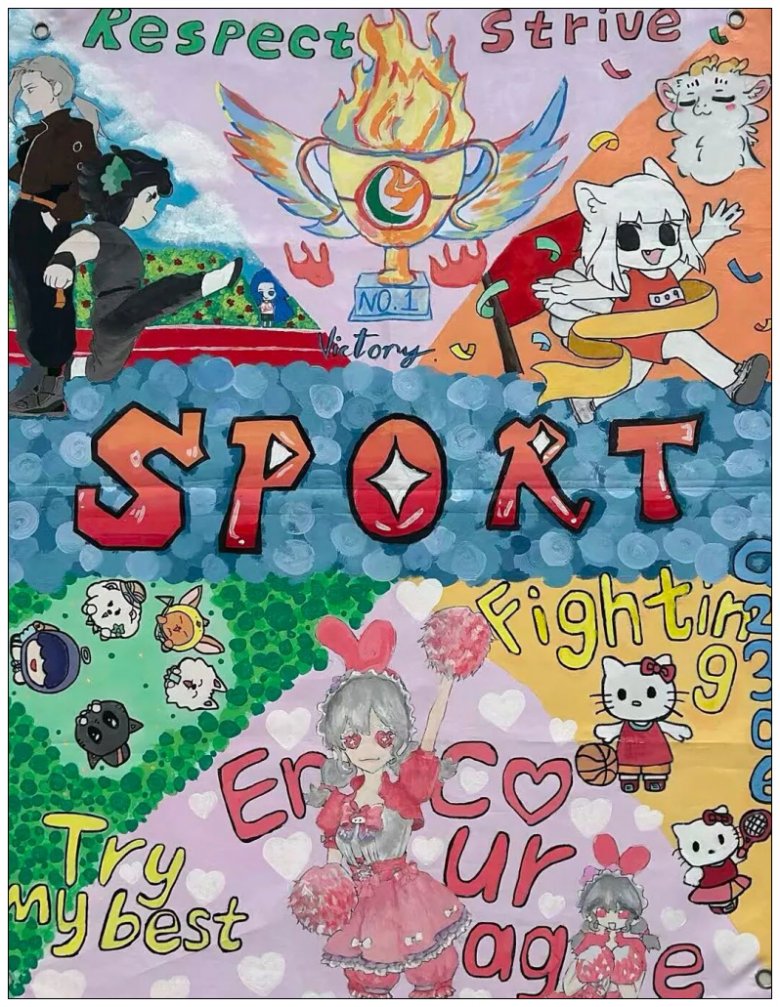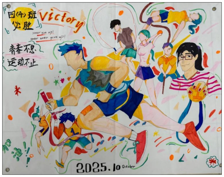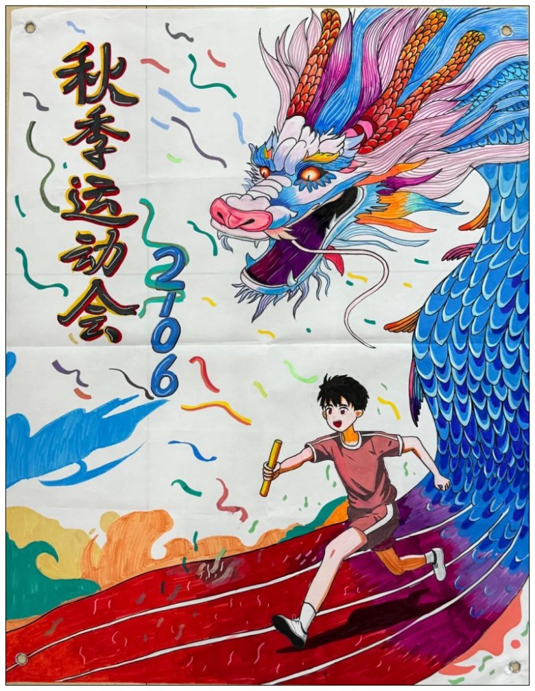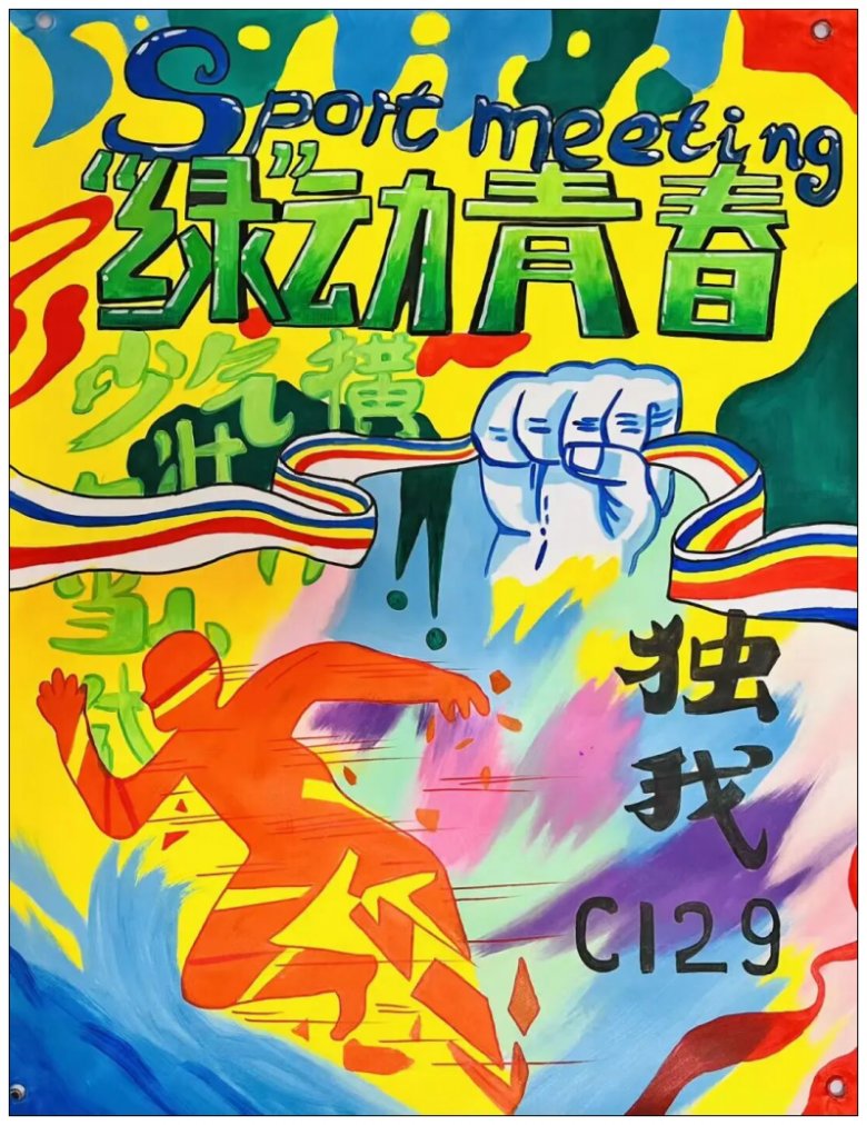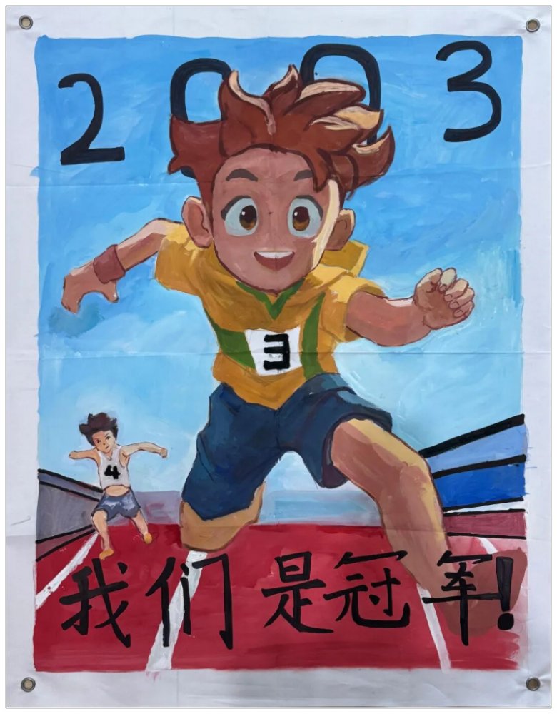 学校将这些内容丰富、主题鲜明、风格多样、细节满满的海报作品张贴至学校田径场,为运动会增添了一道靓丽的风景线。