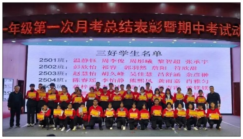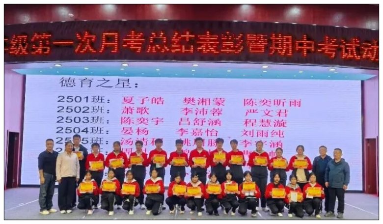 颁奖环节,“各班前 5 名” 与 “德育之星” 依次登台领奖,领导们亲手递上的荣誉证书与奖品,不仅是对优秀者的肯定,更点燃了全场学子的赶超热情。