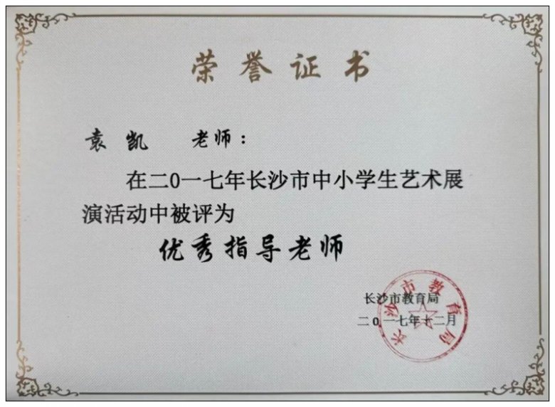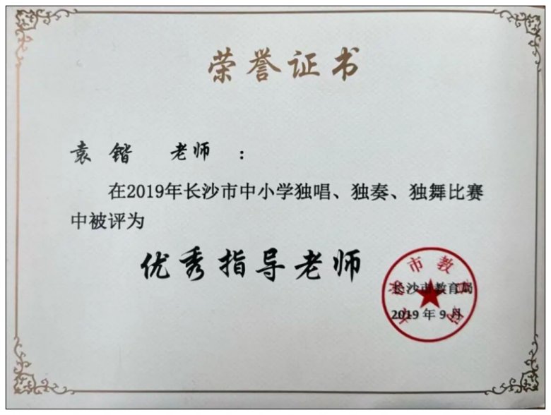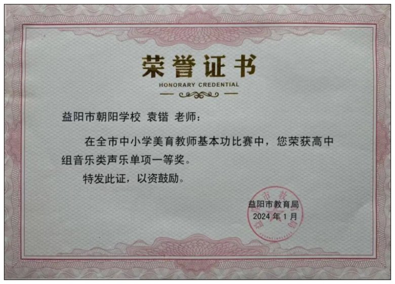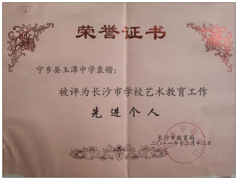 20余载深耕,荣誉自然如期而至,但他从不把奖项当作“终点”,而是视作 “再出发的动力”。他的办公桌抽屉里,整齐叠放着一沓荣誉证书:湖南省建制班合唱比赛、省“三独”比赛、长沙市中小学生艺术展演、益阳市艺术比赛的“优秀指导老师”称号,是对他教学能力的认可;长沙市艺术教育先进个人、益阳市美育教师教学基本功大赛声乐一等奖,是对他专业素养的肯定。
