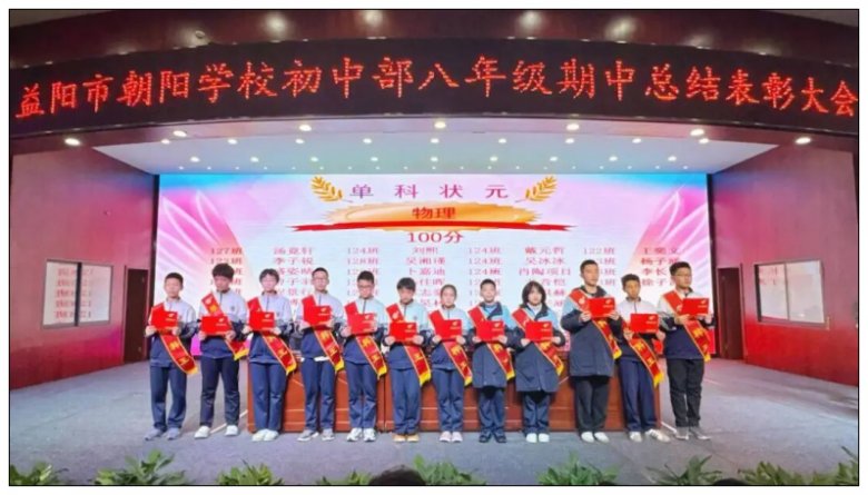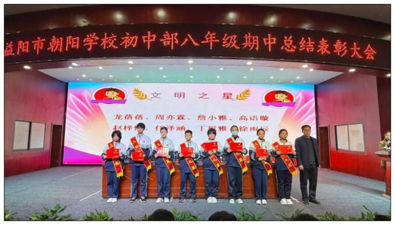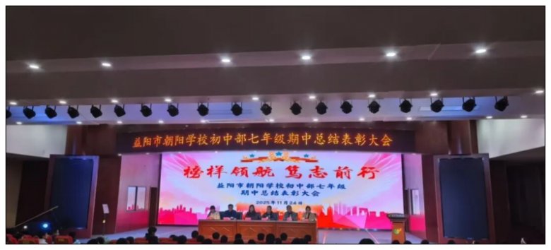 时光荏苒,学期过半,为表彰先进,激励后进,营造积极向上的学习氛围。近日,益阳市朝阳学校初中部全体师生齐聚一堂,隆重举行“榜样领航笃志前行”期中总结表彰大会。活动在庄严而热烈的氛围中拉开帷幕。