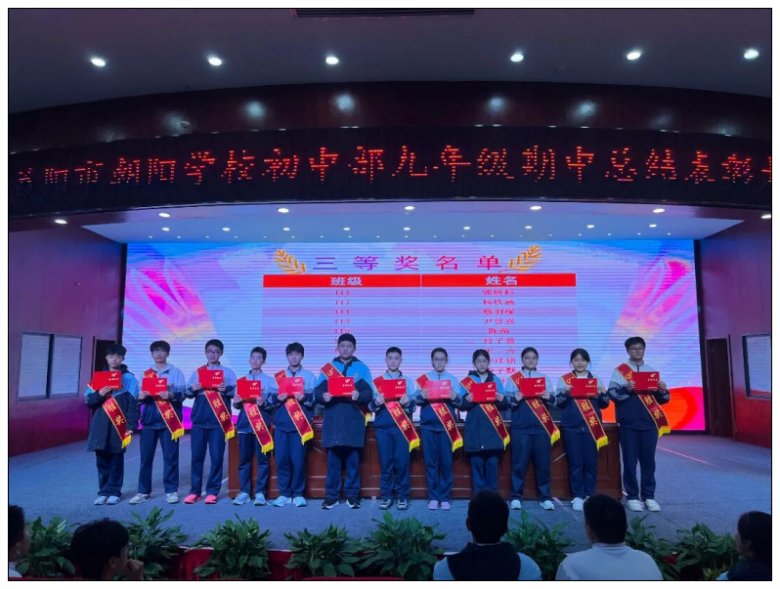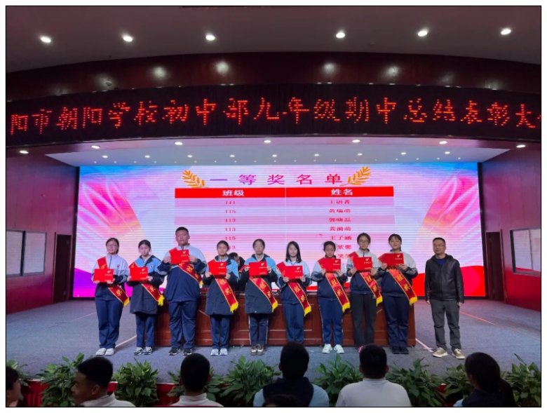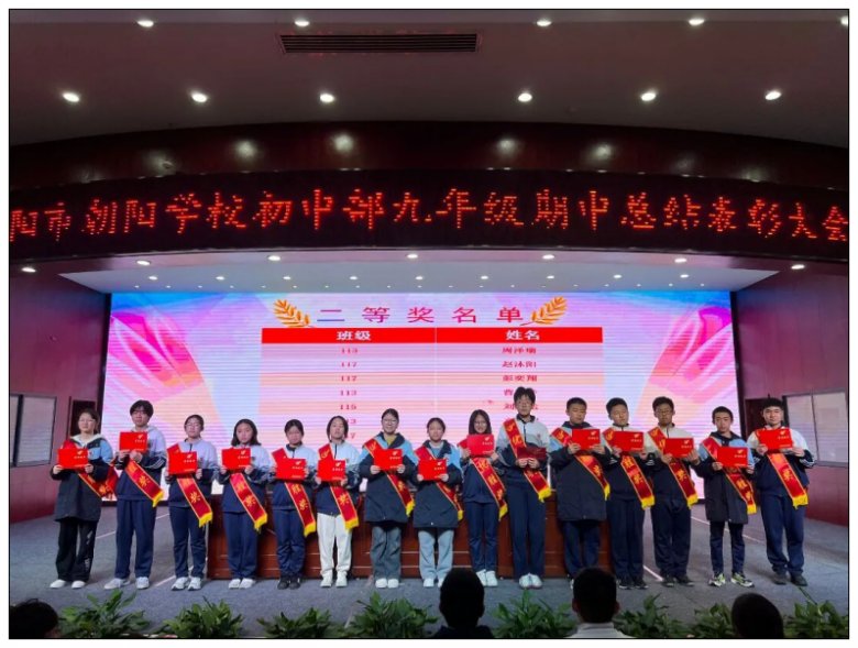 期中总结是终点,更是新的起点。此次表彰大会,不仅让优秀学子收获了荣誉,更让全体同学找到了前行的目标。未来的日子里,愿朝阳学校的学子们,以榜样为帆,以笃志为桨,在中考冲刺的航程中,乘风破浪,逐梦远航,书写属于自己的青春华章!