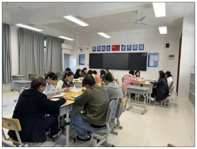 每周固定时段的集智研备,是语文组最热闹的 “教学攻坚时刻”:集备室内全员围坐,教材、教案、新课标手册摊满长桌,年长教师手持红笔圈画重点,年轻教师俯身记录思路,讨论声此起彼伏又井然有序。