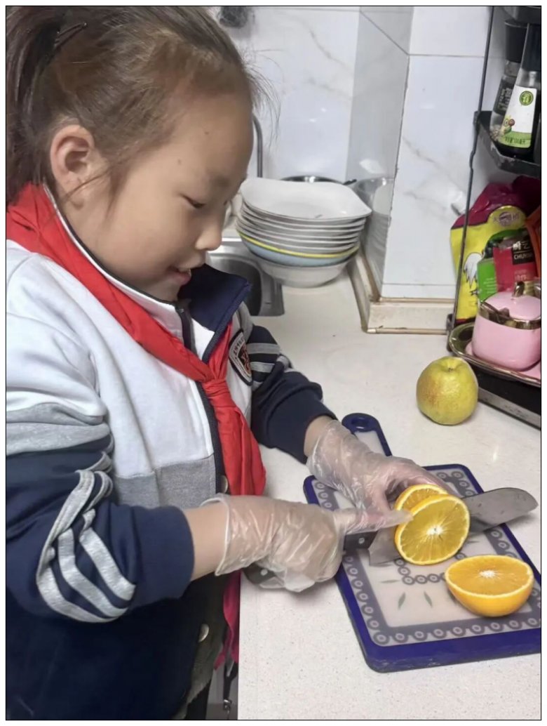 完成后,同学们拍摄了劳动过程照、拼盘成品照,还和自己的“水果艺术”快乐合影,并认真填写文字说明,分享作品名、用到的水果、自己参与的环节,以及专属劳动感言。