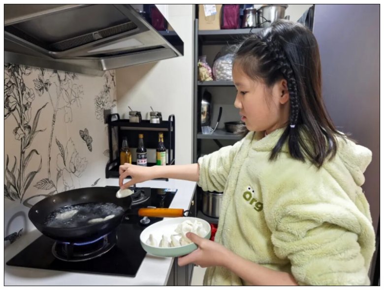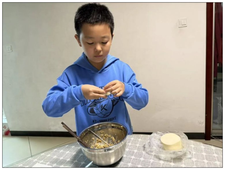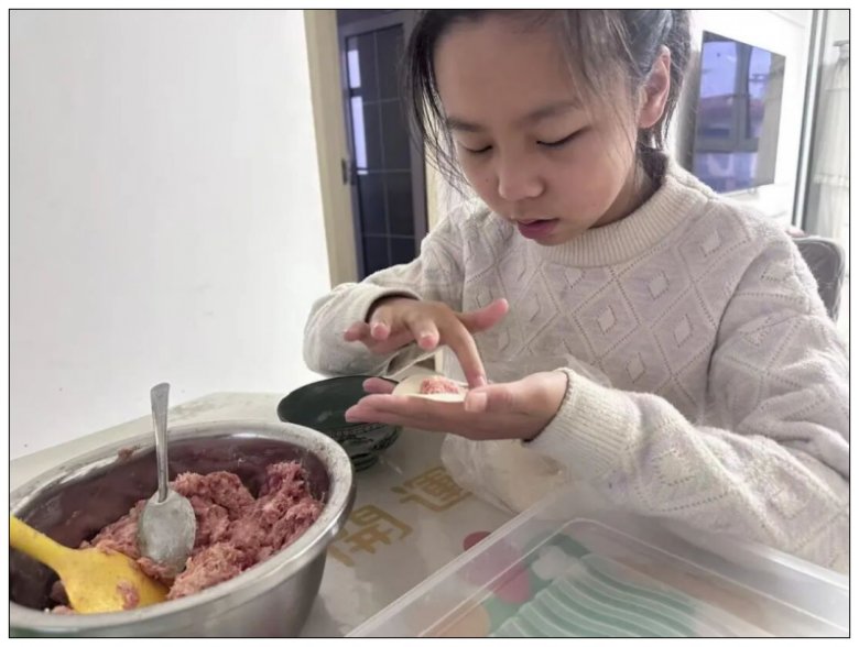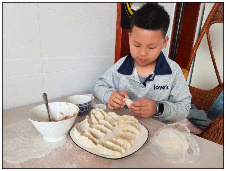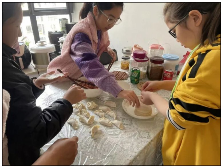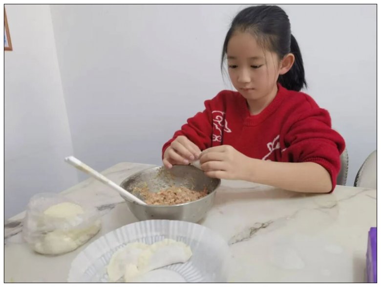厨房里,五年级的同学们化身“小小厨神”,在家长的耐心指导下,拿起备好的饺子皮,认真学习放馅、捏合技巧。虽然初次尝试时动作略显笨拙,包出的饺子有的“歪歪扭扭”,有的“肚大腰圆”,形态各异,但每一个都承载着孩子们的专注与热情。家长们纷纷用镜头记录下这温馨的亲子时光,朋友圈里满是孩子们展示“成果”的喜悦身影,家校携手为活动的顺利开展奠定了坚实基础。