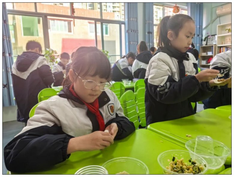 煮好的饺子盛进餐盘,圆润饱满的模样让人垂涎欲滴。到了品尝环节,食堂里更是充满欢声笑语,孩子们迫不及待地用筷子夹起饺子送入口中,脸上满是满足。