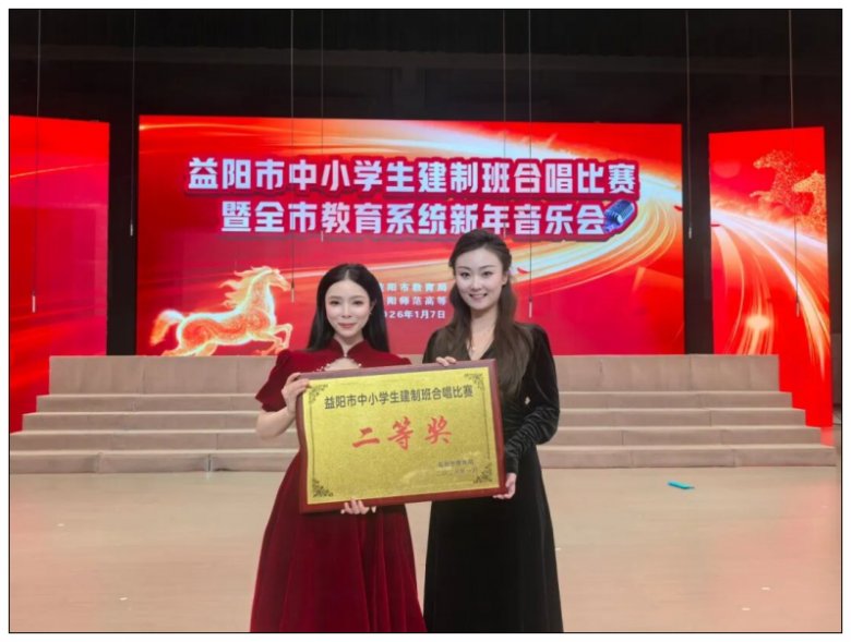 2026年1月7日,由益阳市教育局主办的益阳市中小学生建制班合唱比赛暨全市教育系统新年音乐会圆满落幕。本次赛事汇聚了全市各区县数十所学校的优秀建制班队伍,同台竞技、各展风采,竞争尤为激烈。我校2103班凭借扎实的功底与出色的表现脱颖而出,最终斩获小学组第二名二等奖的优异成绩,为学校赢得了荣誉。