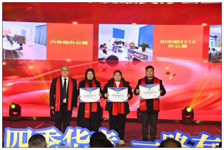 高中部教师带来歌曲串烧,熟悉的旋律唤起四季的美好回忆;舞蹈《喜气洋洋》动感欢快,将现场氛围推向高潮,冬日的寒意被满满的温情与喜悦驱散。