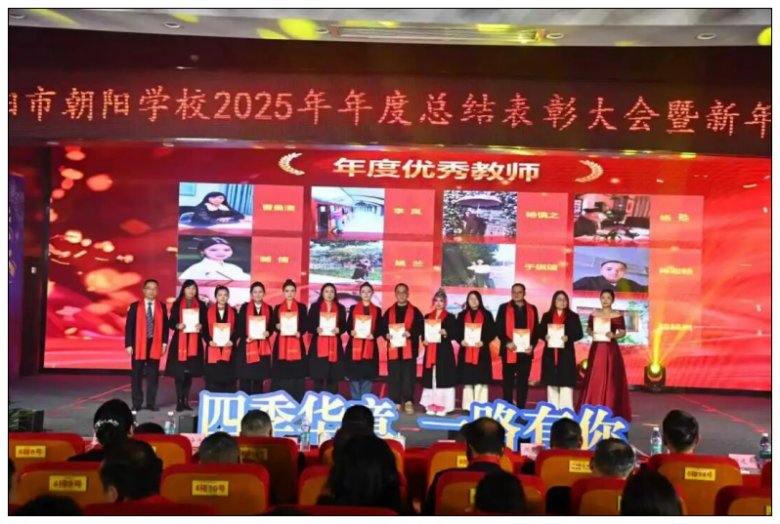 歌声袅袅,诉不尽对2025年的眷恋;舞姿翩翩,道不完对2026年的期盼。此次年度总结表彰大会暨新年团拜会,不仅是对学校2025年工作的全面回顾与总结,更是对全体教职工的肯定与激励,既让大家在欢歌笑语中感受到了朝阳大家庭的温暖,也凝聚起了新一年砥砺前行、再创辉煌的坚定信念。