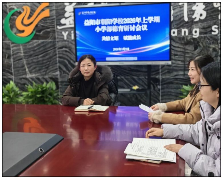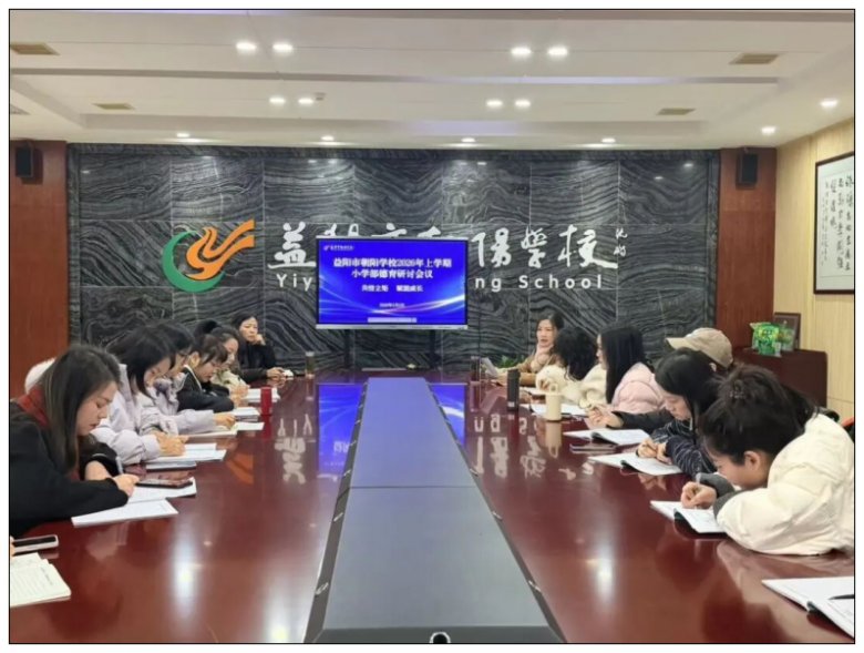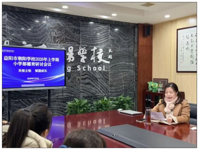 为深化德育工作内涵,提升班主任专业育人能力,打造有温度、有智慧的德育队伍, 2026年3月2日,益阳市朝阳学校小学部全体班主任齐聚一堂,召开新学期德育研讨会。会议由小学部德育主任胡欣主持。胡主任从AI时代的教育本质、班级文化建设、家校沟通艺术及新学期工作部署四个方面,为班主任们带来一场有深度、有温度的分享。