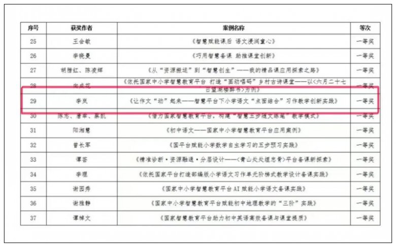 在2026年国家中小学智慧教育平台应用微视频案例评选活动中,我校报送的李岚老师的作品《让作文“动”起来---智慧平台下小学语文“点面结合”习作教学创新实践》凭借创新的教学设计和扎实的平台应用实践,在众多参赛作品中脱颖而出,荣获省级一等奖的殊荣。