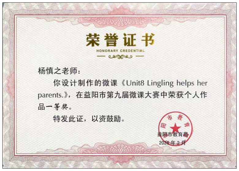 近期,一项市级与一项省级竞赛评选结果相继揭晓。我校教师凭借扎实的教学功底与创新的数字化教学实践,在益阳市第九届微课大赛与国家中小学智慧教育平台应用微视频案例评选中双双脱颖而出,喜获佳绩!