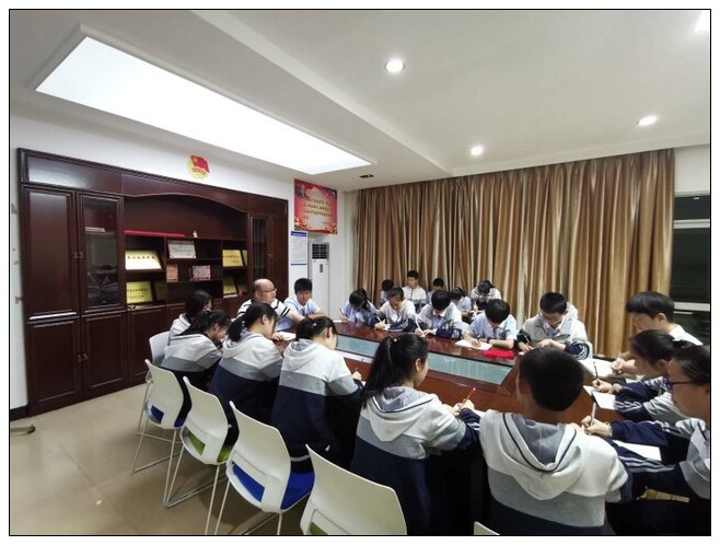 2019年4月2日中午12:30,朝阳国际实验学校团委书记曹智民在综合楼二楼团委活动室就“入团积极分子”开展授课培训,我校八九年级推荐的入团积极分子到场聆听。